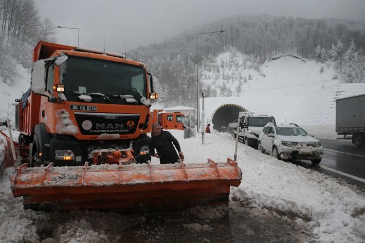 İstanbul ile Ankara arasında önemli geniş noktalarından biri olan Anadolu Otoyolu'nun Bolu Dağı Tüneli kesiminde 4 gündür kar yağışı aralıklarla devam ediyor.