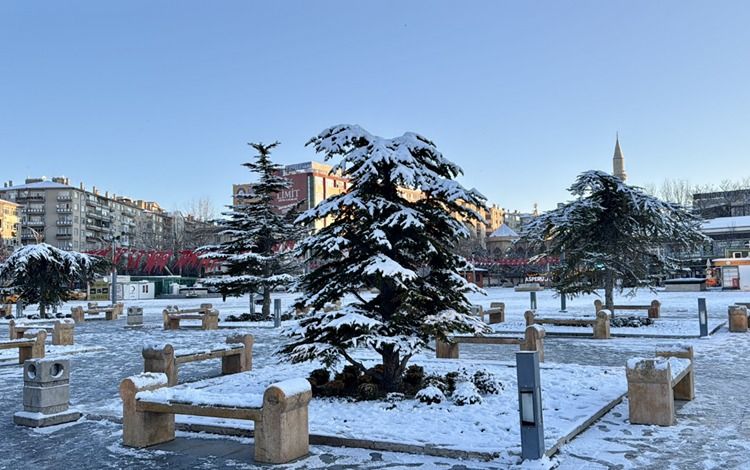 Kar nedeniyle kent merkezindeki cadde, sokak, park ve araçlar beyaza büründü.