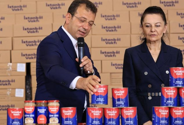İmamoğlu ve beraberindeki heyet, konuşmanın ardından, İstanbullu ihtiyaç sahiplerine ulaştırılacak ilk konserveleri, İBB araçlarına yükledi.