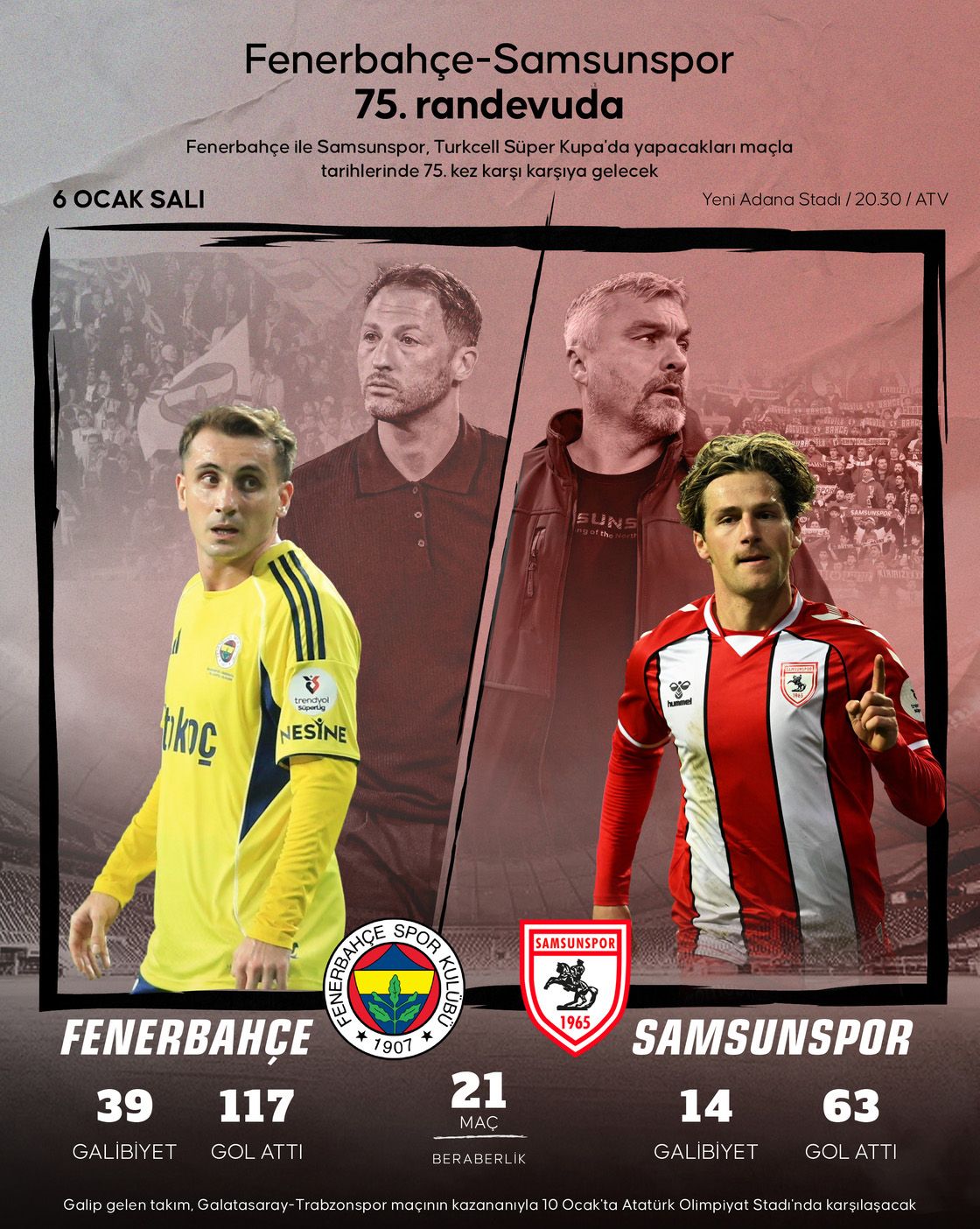 Galip gelen takım, Galatasaray - Trabzonspor maçının kazananıyla 10 Ocak'ta Atatürk Olimpiyat Stadyumunda karşı karşıya gelecek.